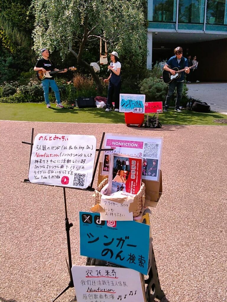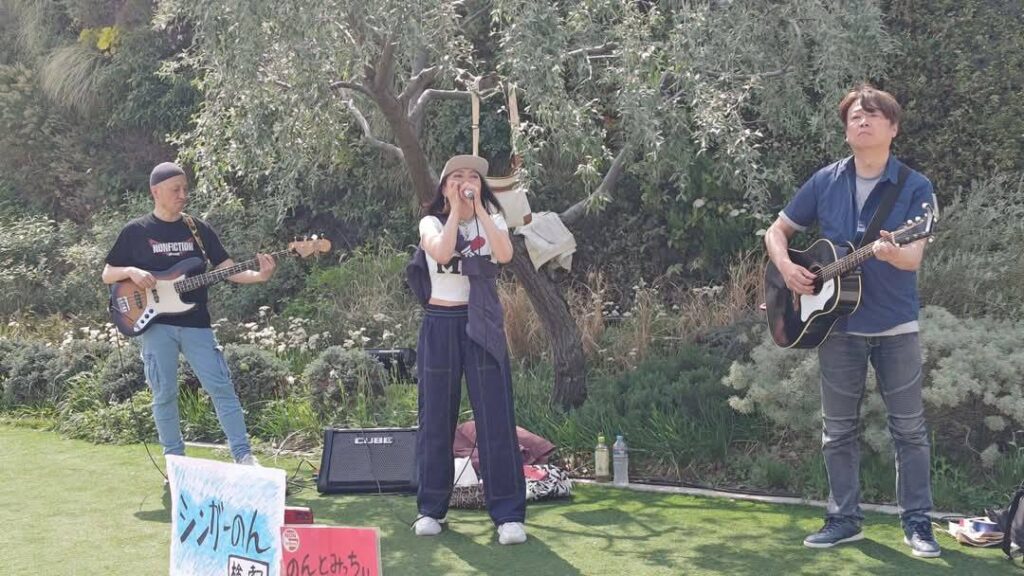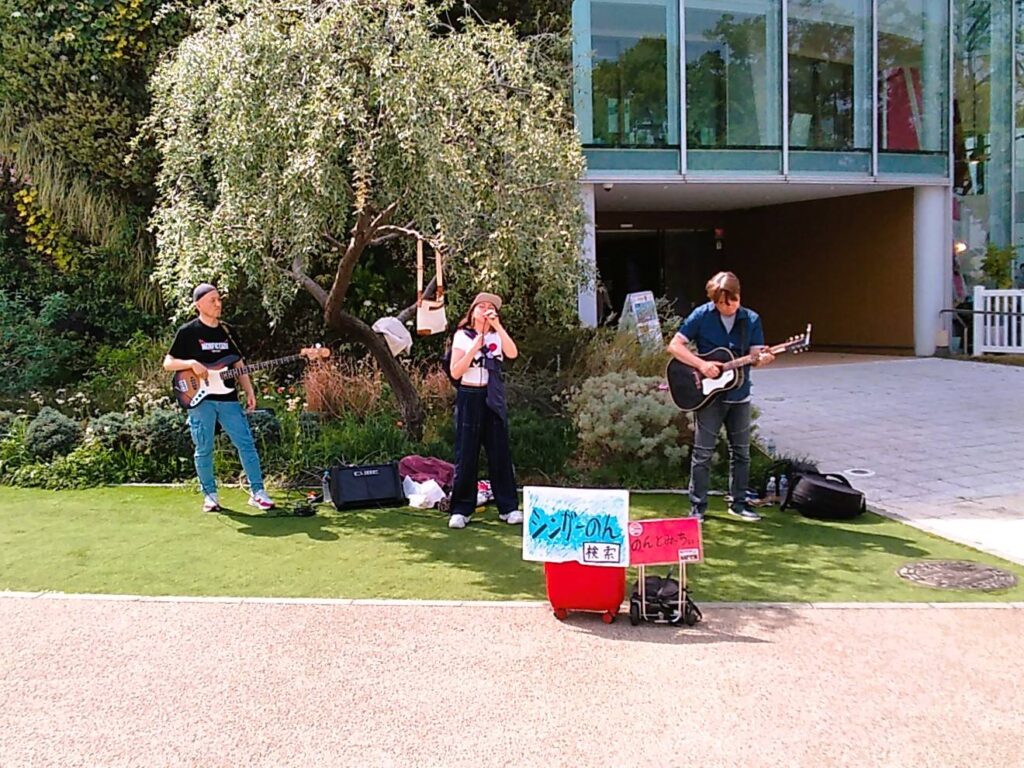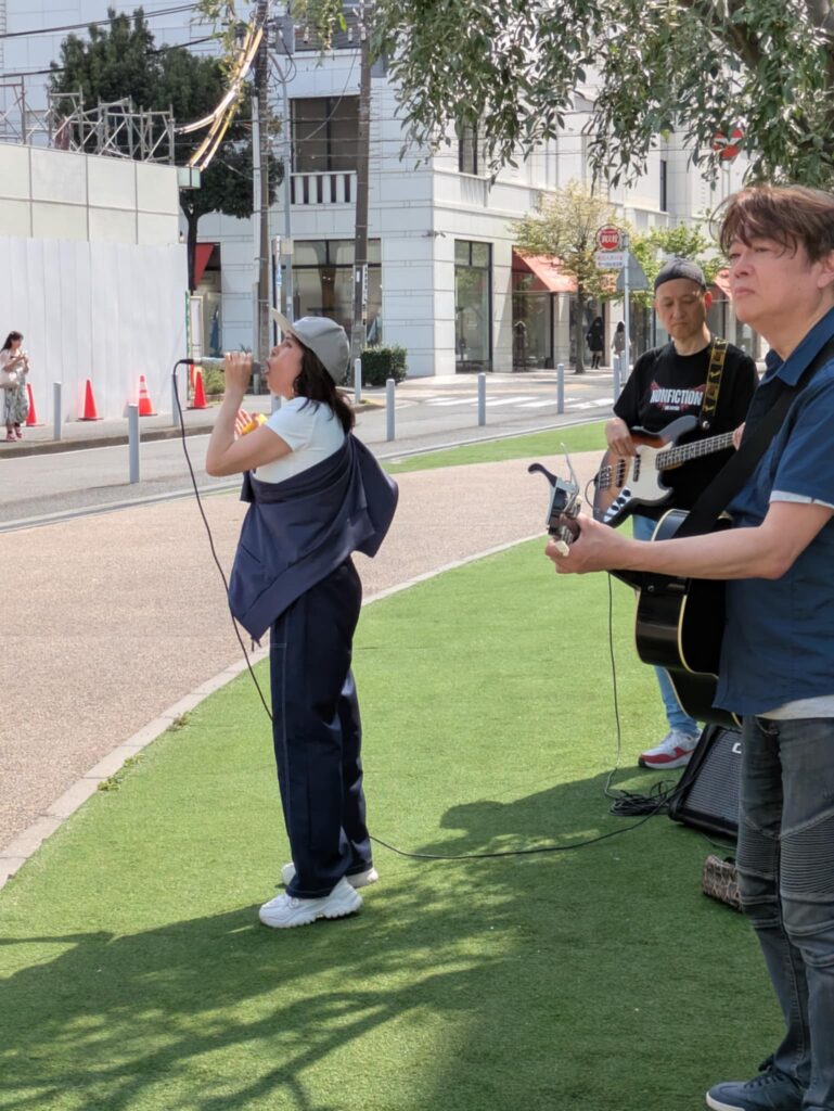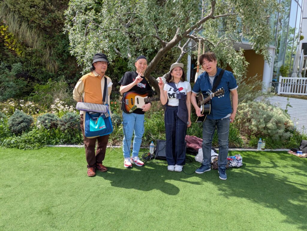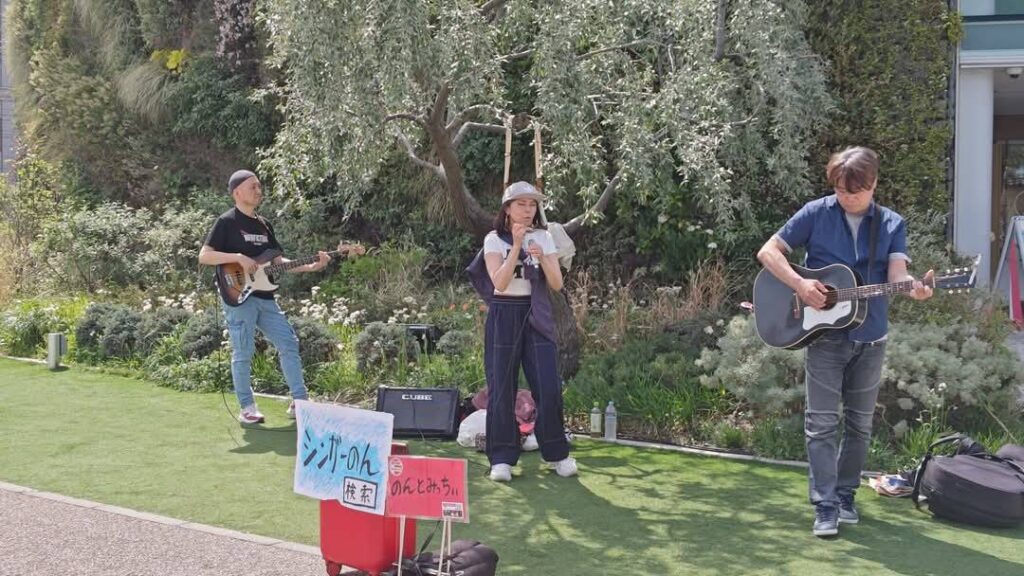 こんかいはベースのひろっちが参加してくれてのんみちwithひろっちで演奏😆 お天気が良くて陽射しが夏みたい(夏)私達は木陰で演奏できたのだけど、、見ている方々が陽射しの中で、、皆さん額に汗が点々として熱い中で申し訳ない感じでした、なので早く歌って早く終わらなくちゃという思いと、せっかく来てくださってるのだから丁寧に歌を届けなくちゃという複雑な気持ちでした😅 SNS繋がりの方、音楽仲間の方々、通りすがりの方、そして昔から私の活動を知ってる人は以前、私が出てた雑誌やCDを持って応援に来てくれました 温かい皆様に感謝感謝です😭