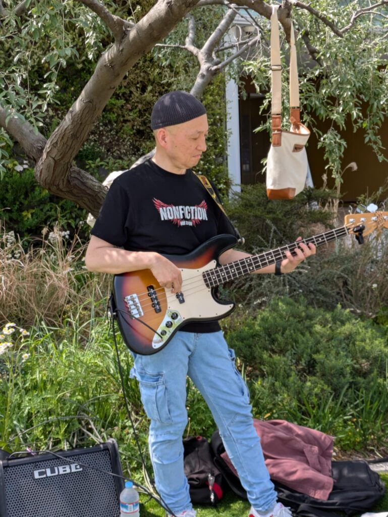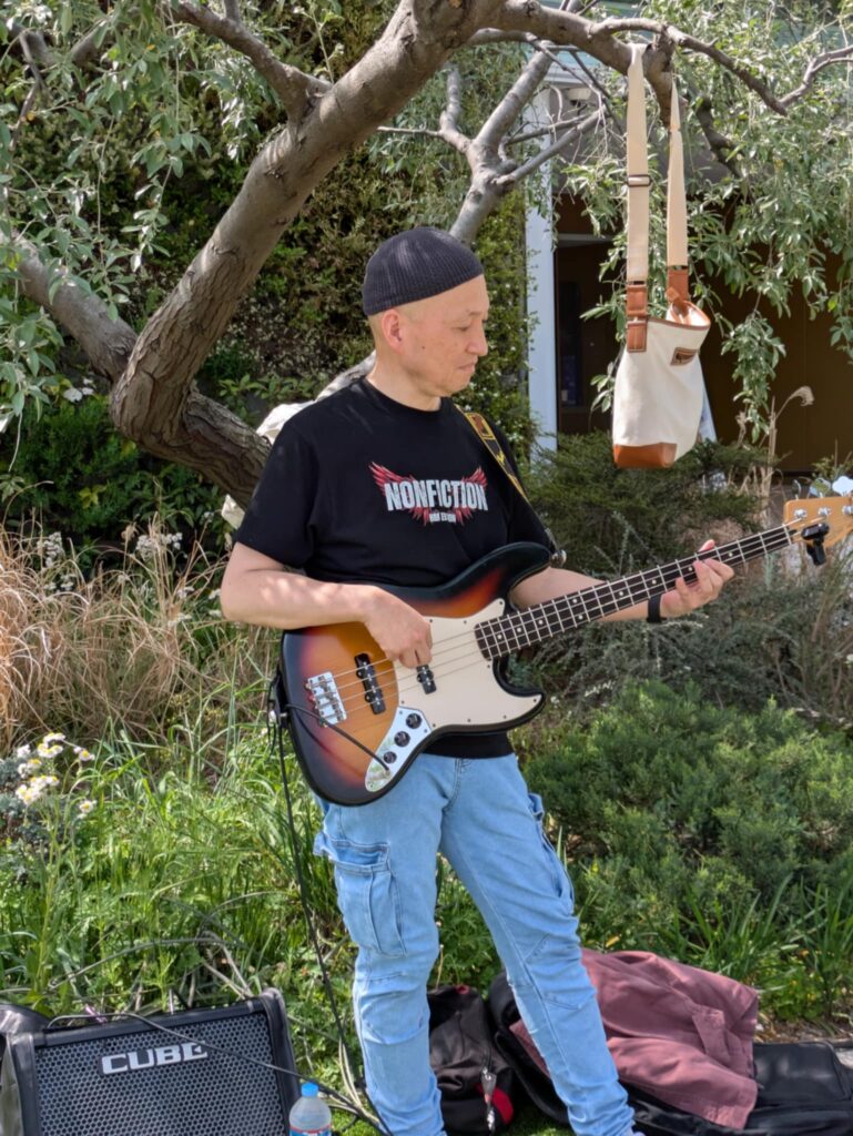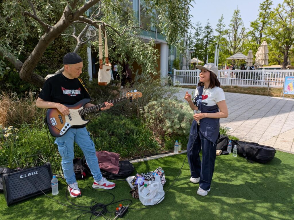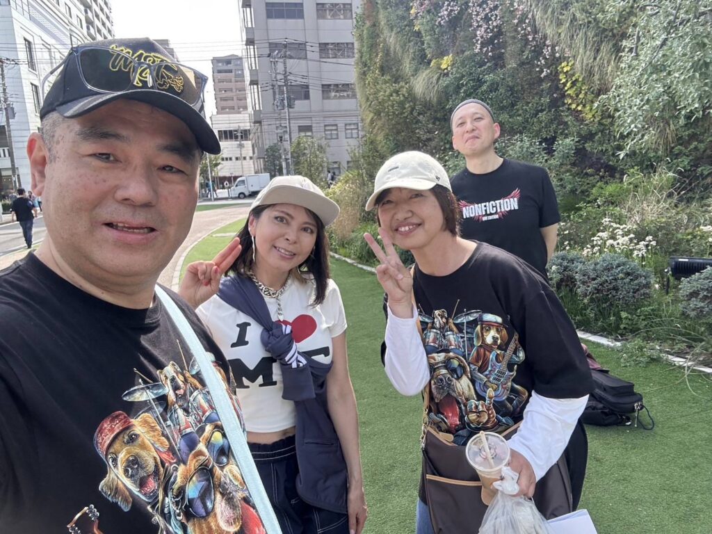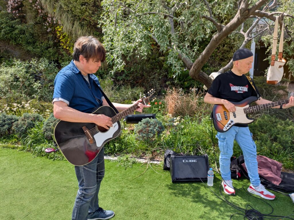 こんかいはベースのひろっちが参加してくれてのんみちwithひろっちで演奏😆 お天気が良くて陽射しが夏みたい(夏)私達は木陰で演奏できたのだけど、、見ている方々が陽射しの中で、、皆さん額に汗が点々として熱い中で申し訳ない感じでした、なので早く歌って早く終わらなくちゃという思いと、せっかく来てくださってるのだから丁寧に歌を届けなくちゃという複雑な気持ちでした😅 SNS繋がりの方、音楽仲間の方々、通りすがりの方、そして昔から私の活動を知ってる人は以前、私が出てた雑誌やCDを持って応援に来てくれました 温かい皆様に感謝感謝です😭